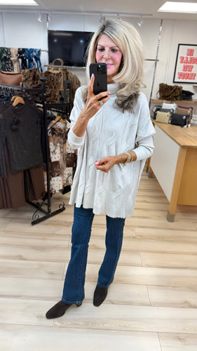 1. Cable Knit Oversize Polo-Oatmeal