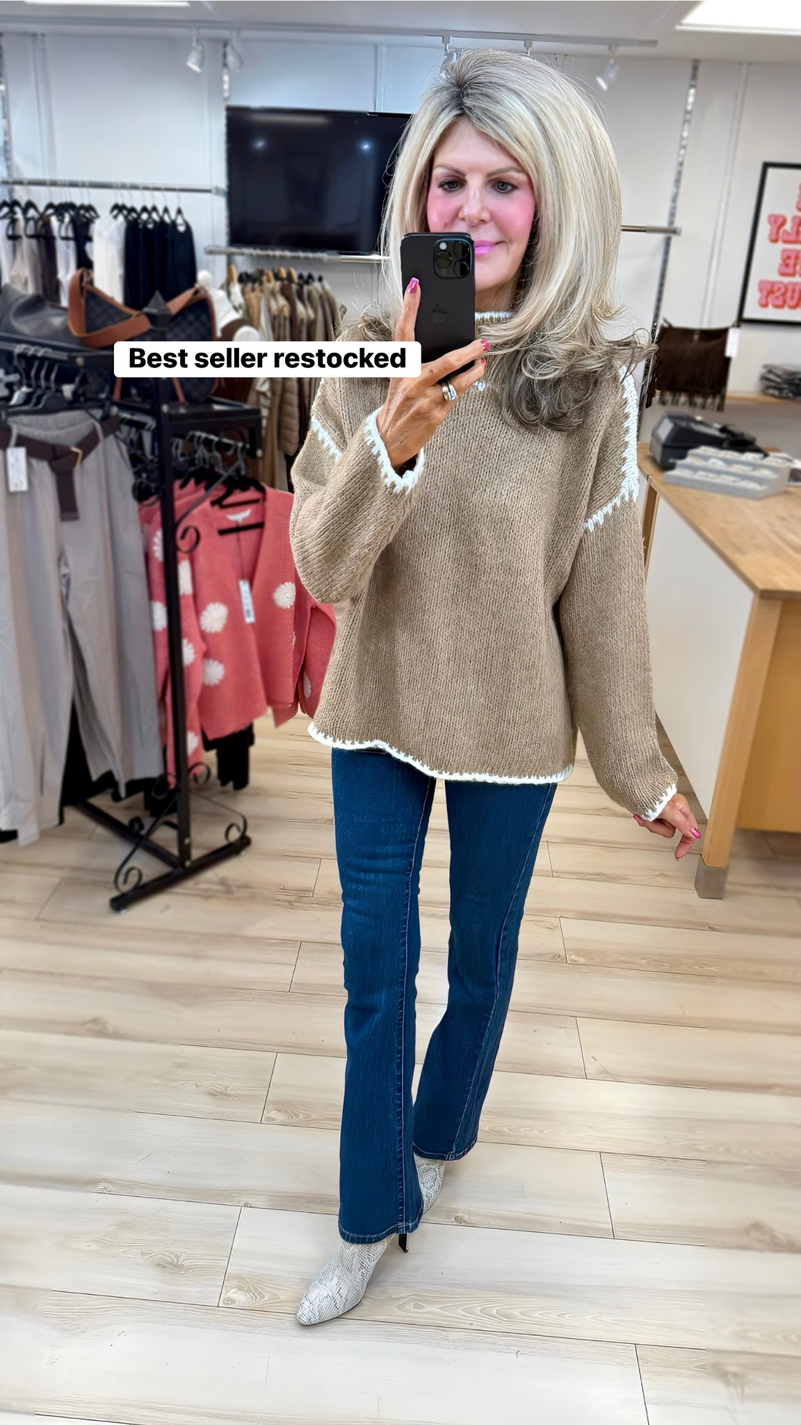 1.    Blanket Stitch Chunky Jumper-Camel/White Stitch