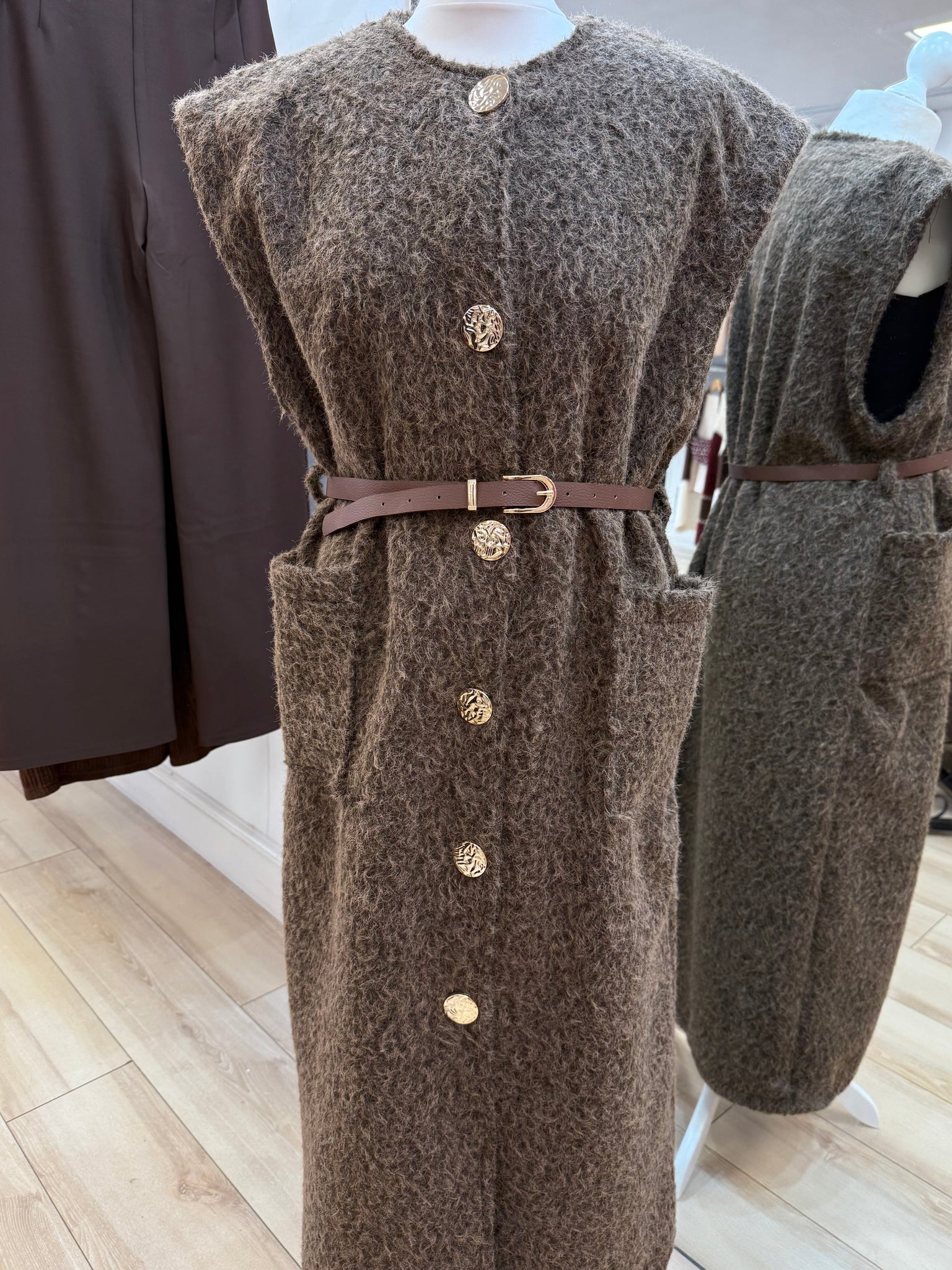 1.Belted Gold Button Waistcoat-Chocolate Marl