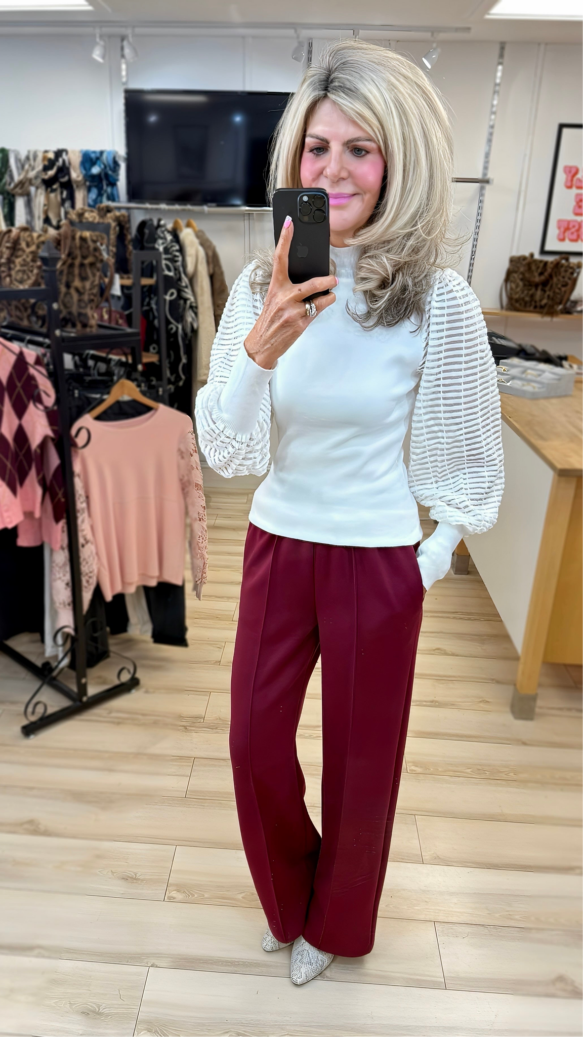 1.              Wide Leg Front Seam Jogger-Wine